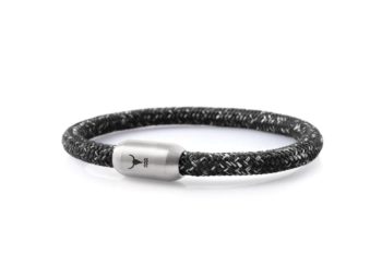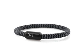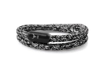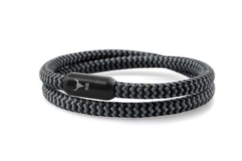 Indestructible and expressive men’s bracelet made of climbing rope (sail rope) in classic gray-black design. Double wrapped.